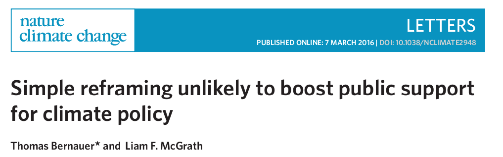 This week, there’s an interesting new paper in Nature that finds that however you spin the climate message, it doesn’t make much difference to people’s opinion: Simple reframing unlikely to boost public support for climate policy, by Bernauer and McGrath, based in Zurich. The paper is paywalled, but there is also a university press release, Everyone sees the world through their own prism: “How can public opinion be influenced in favour of climate protection? ETH political scientist Thomas Bernauer explored the question in a recent study. His sobering answer is that there is no magic formula”. “Someone who has always supported green policies will find their point of view validated by the arguments, whereas those who have always been sceptical about climate change will not be influenced by reasoning based on economic or health grounds.” There’s a comment box at the end of the press release.