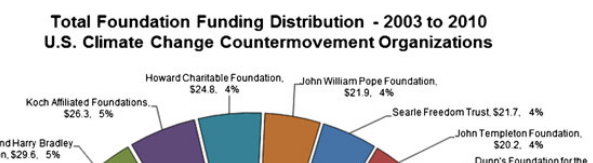 In a comment to substantiate his claims, Levy links to the article “Dark Money” Funds Climate Change Denial Effort which is about Robert Brulle’s investigation into the ‘climate change counter-movement’.  Brulle’s paper lists the Templeton Foundation as one of these organisations, see part of his pie chart below. But as noted above, the article acknowledges that Levy has received funding from the Templeton Foundation.