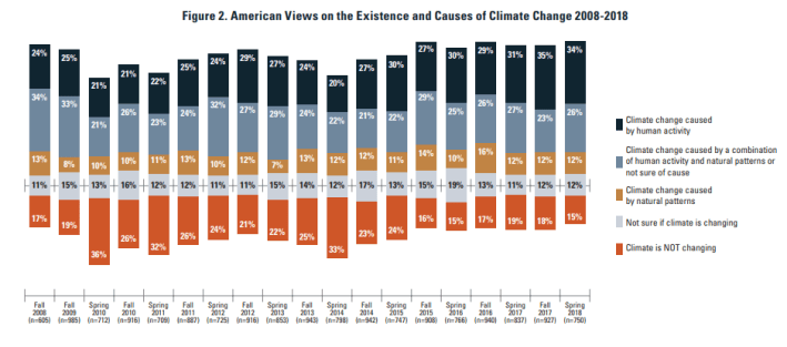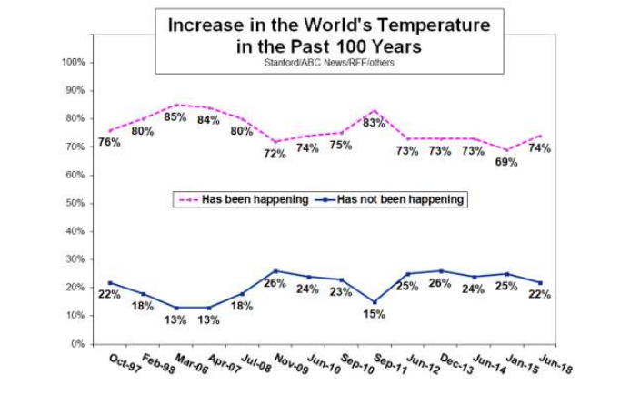This survey again shows that public opinion has hardly changed, this time on the existence of climate change, over a period of 20 years: