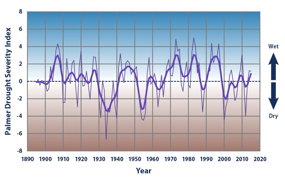 For the USA, there is a graph of the amount of drought on the EPA website, showing that there’s no trend and the worst period of drought was in the “dust bowl” era of the 1930s: