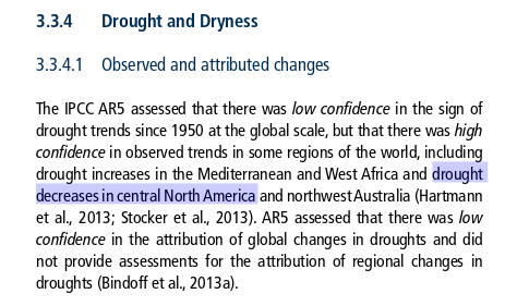 One key aspect of the global warming theory (Arrhenius 1896) is that, as a response to co2 forcing, the water vapour in the atmosphere should increase. How is this ‘permanent drought’ extrapolation in agreement with the increasing water vapour hypothesis?