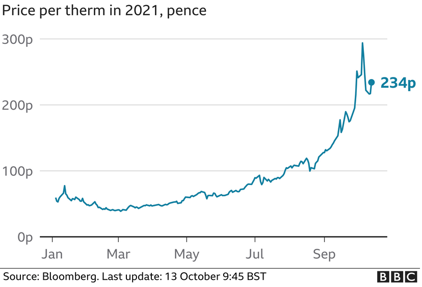 Two months ago when I wrote this, the gas price given by the BBC was £2.34/therm. That was bad enough, up from £0.40/therm a year before.