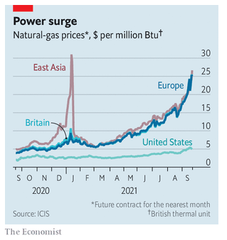 Yesterday, according to Trading Economics, the UK natural gas price capped out at £3.59/therm, up from £0.48/therm a year before. (Yes: a 7 fold increase in a year.)