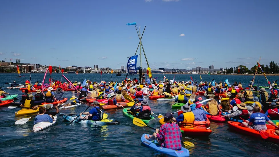 Ignorant protestors are at it again. I wonder what all these kayaks are made from?