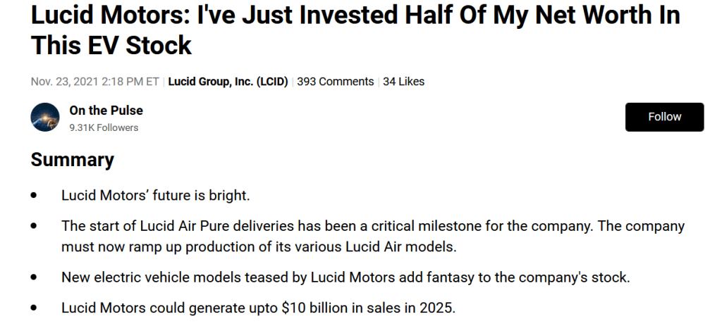 In fact, some smart guy called Mr. “On the Pulse” got so excited by Lucid that he bet the farm on it.