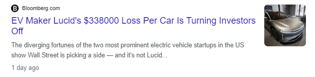 Thanks. I heard you the first time. Lucid has gone for the luxury EV market, which of course is low volume and rife with competition. Maybe they will make a go of it. They do have the serious backing of the Saudis, so they will not go bankrupt any time soon. Obviously Lucid are not really going to be affected by EV mandates or quotas, which will mostly benefit mass market vehicles.