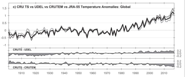 As we know, the world is hotter than it was. CRU TS shows an increase starting in about 1980 (Harris et al):