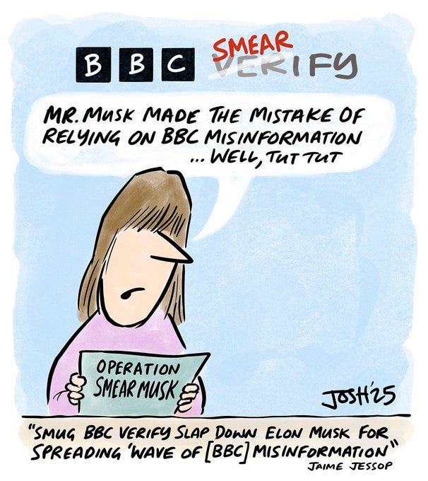 They did a hitjob on Musk very recently re. his comments about a memo which the BBC says doesn’t exist. Trump Derangement Syndrome, Musk Derangement Syndrome. The BBC are losing it. Their bias is so blatant now that it’s unsustainable.