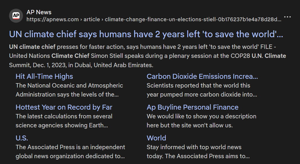 173. Jit, Simon Stiell must have mis-spoke when he was reported as saying almost two years ago that there were just two years left to save the planet. There’s not much time, but thankfully, as always, there is still a small amount of time left. At least that’s what the Guardian says. Phew: