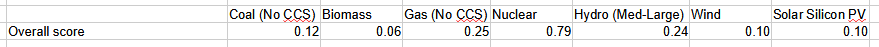 There is only one “questionable” score – where Reliable generators score one, what do Intermittent generators score? I’ve put 0.1 – but it could be unfairly low.